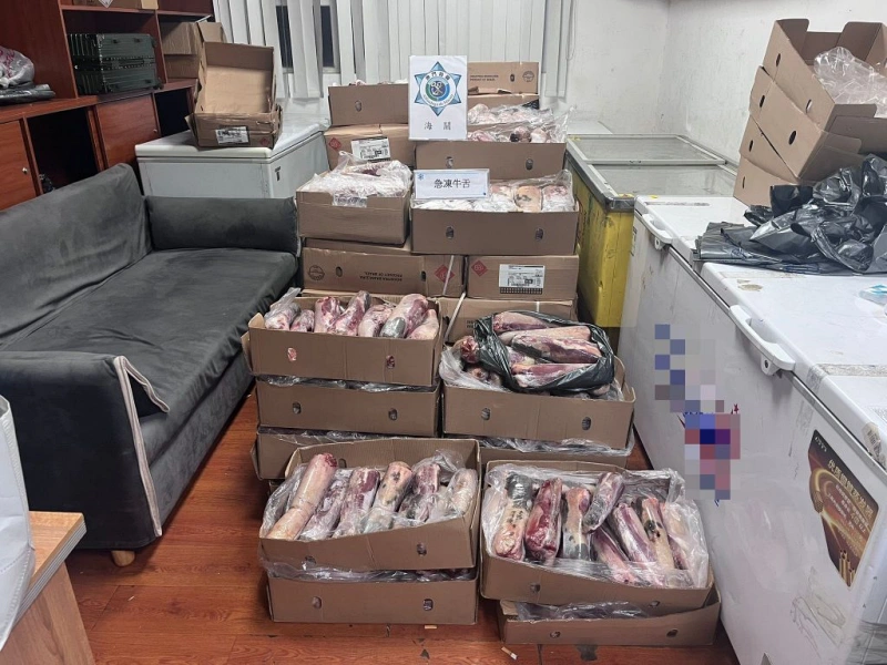 マカオ税関が運び屋向け密輸品供給拠点摘発…出所不明の冷凍牛タン約1375kg発見