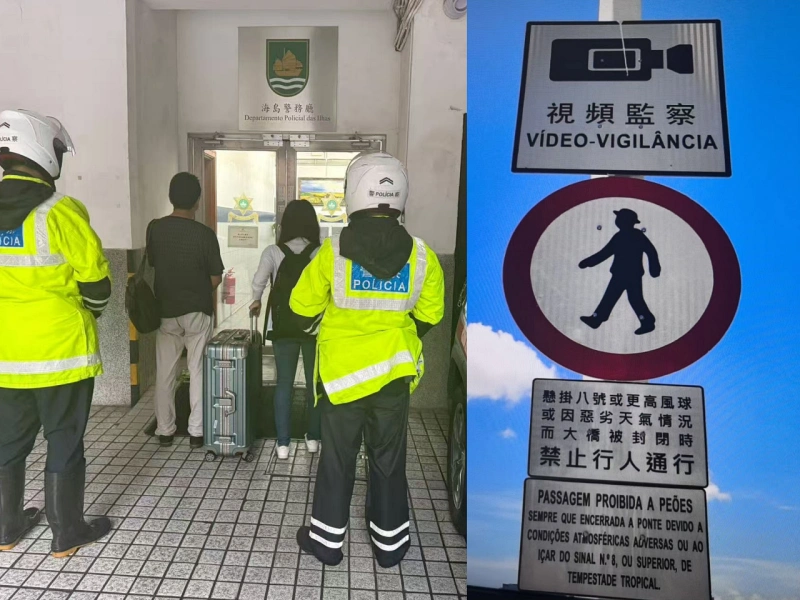 マカオ治安警察局は7月20日午後2時半頃、シグナル9が発令中の同日午前11時半頃にカルヴァーリョ総督大橋を徒歩で渡っている人物がいるとの通報を受け、現場に警察官を急行させ、まさに橋を渡っているところだったインバウンド旅客2人の身柄を確保するとともに、安全な場所への移動を支援したと発表。