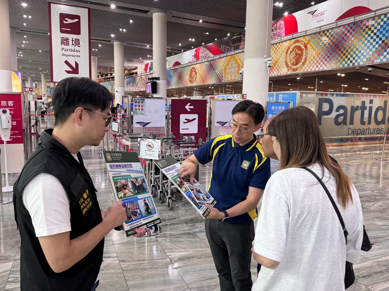 マカオ司法警察局は8月19日、旅行へ出かける機会が多くなる夏休みシーズンに合わせ、前月(7月)21日から8月17日にかけてマカオ国際空港の出発フロアで防犯キャンペーンを展開し、延べ約5500人に接触したと発表。