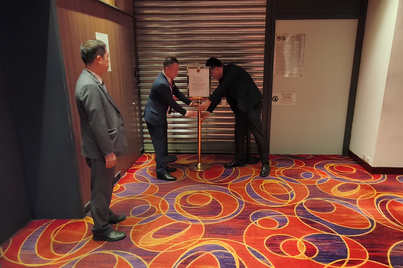 折しも、マカオに「超強」レベルの台風18号が接近したことを受け、例外的措置として23日午後5時から25日午前2時までの33時間にわたって全カジノ施設が臨時休業となったため、同店のクローズ作業は臨時休業中に進められた。