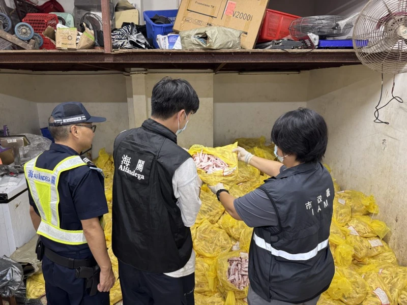 税関によれば、摘発対象となった場所にはいずれもマカオ人の現場責任者の女(45)とスタッフの女(36)の2人がおり、中から冷凍鶏もみじ(鶏の足先の部分)約2500キログラム、市価およそ6万5000パタカ(日本円換算:約120万円)相当を発見したとのこと。