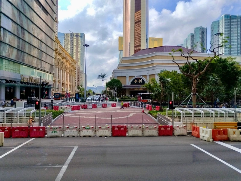 従来、エリアを南北に貫く幹線道路「友誼大馬路」のスターワールドホテルやウィンマカオのある東側とプレジデントホテルやランドマークホテルのある西側を往来する際、横断歩道を利用するには藝園のフェンス外の大回りを余儀なくされたが、新設の歩行者用ルートでは最短ルート化を実現するとともに、バリアフリー対応や横断歩道の横幅拡張のなども同時に行われたとのこと。