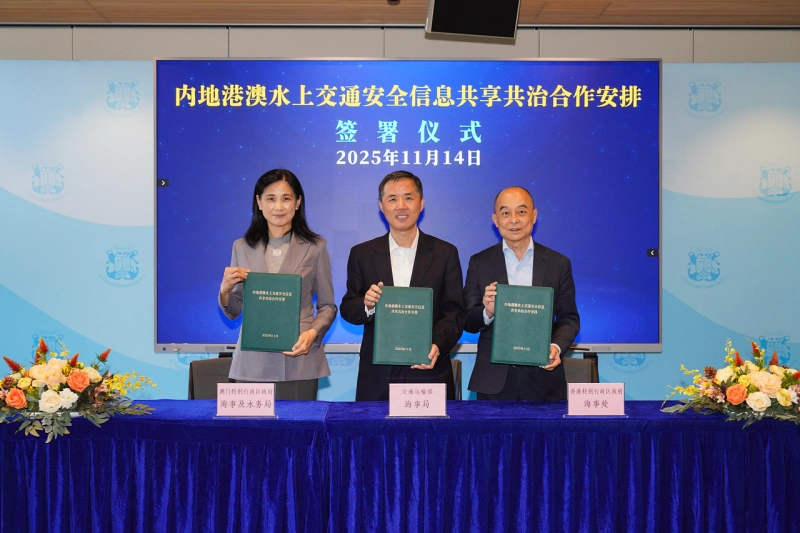 マカオ政府海事・水務局(DSAMA)によれば、中国本土、香港、マカオの海事当局は11月14日、マカオで「中国本土—香港—マカオ海事協力会議」及び「香港・マカオ海上安全業務会議」を開催し、三地間の海上交通安全に関する協力体制の強化を確認するとともに、水上交通安全情報の共有と共同管理を目的とした新たな協定「中国本土・香港・マカオ水上交通安全情報共有・共同管理協力アレンジメント」の調印が行われたとのこと。