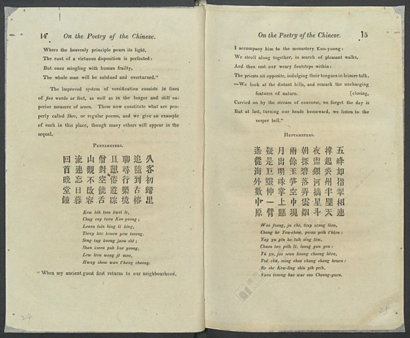 ジャンルは歴史、文学、教育、自然科学など多岐にわたり、いずれも高い史料価値を有するもので、サー・ジョン・フランシス・デービス編著『漢文詩解』(1834年)や、当時のマカオの名所写真を付し、都市計画構想を記録した『澳門及其未來港口(マカオとその未来の港)』(1922年)、1927年に襲来した台風時のマカオの状況を詳細に記録した『1927年8月20日的風災:亞美打•皮內羅中校的報告(1927年8月20日の風災:アルメイダ・ピニェイロ中佐の報告書)』、マカオ生まれのポルトガル人ジョゼ・ペドロ・ブラガによる著作で、19世紀末に香港の油麻地(ヤウマテイ)でパイナップルなどの果樹栽培を行った際の記録をまとめた『開拓香港的葡萄牙人:在九龍的園藝實驗(香港を開拓したポルトガル人:九龍における園芸実験)』(1930年)、1950年代のマカオにおける52種の食用魚を学名・漁獲期・中国語名を付記して紹介した議事公局で獣医を務めたジョゼ・ダ・シルバ・ビディガル編著の『澳門可食用魚類目錄(マカオ食用可能魚類目録)』(1959年)などが含まれるとのこと。
