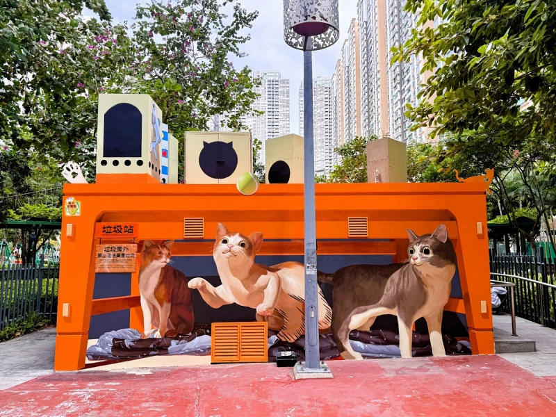 外観装飾作業を終えたばかりというタイパ島・タイパ中央公園にあるごみ収集所(写真:IAM)