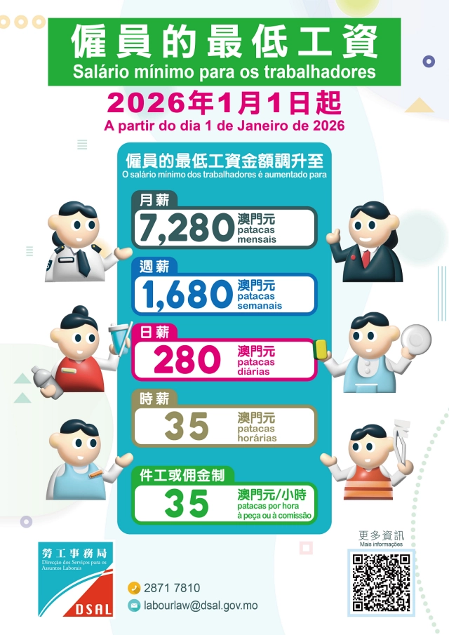 マカオ政府行政法務司の黄少澤司長が昨年(2025年)10月にマカオ行政会の会見で最低賃金の引き上げを発表した際、今回、マカオの総従業員数の4.4%にあたる約1万8200人が恩恵を受けると説明していた。